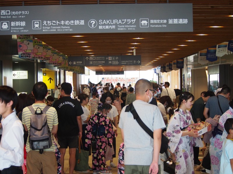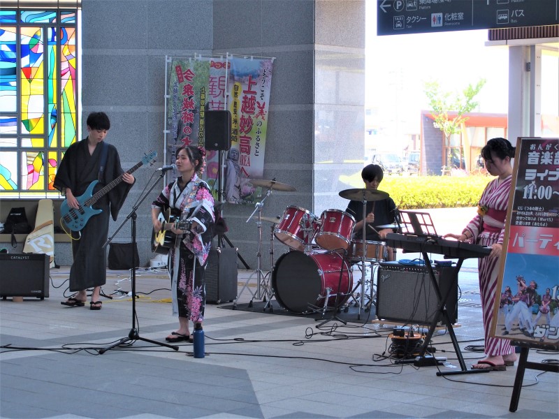 7月17日(月)、上越高生による地域貢献活動「上越妙高駅ゆかた祭り」を行いました。 今年は文化部だけでなく柔道部、女子バスケットボール部も運営に携わり、ステージ発表した音楽部、ダンス部もあわせると総勢180名近くの生徒が参加する一大イベントに成長しました。 今年も多くの来場者の方に楽しんでいただき、しっかり地域に根付いた活動になっています。