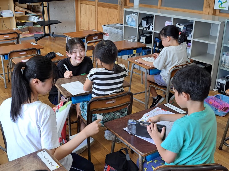 7月31日(月)、インターアクトクラブと有志の生徒が、上越市立飯小学校をお借りして、児童と勉強したり遊んだりして、交流しました。また、午後は放課後児童クラブの手伝いをさせていただき、いろいろな学年の子どもたちと関わることができました。小学生から元気をもらった楽しい一日でした。