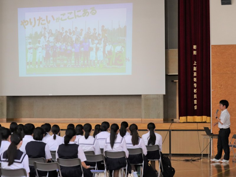 8月2日(水)に第1回オープンスクールを開催しました。400名を超える中学生、保護者からご参加いただきました。全体会での司会進行や学校説明、各教科のスペシャル講座での補助など、在校生が全面的に運営に関わりました。