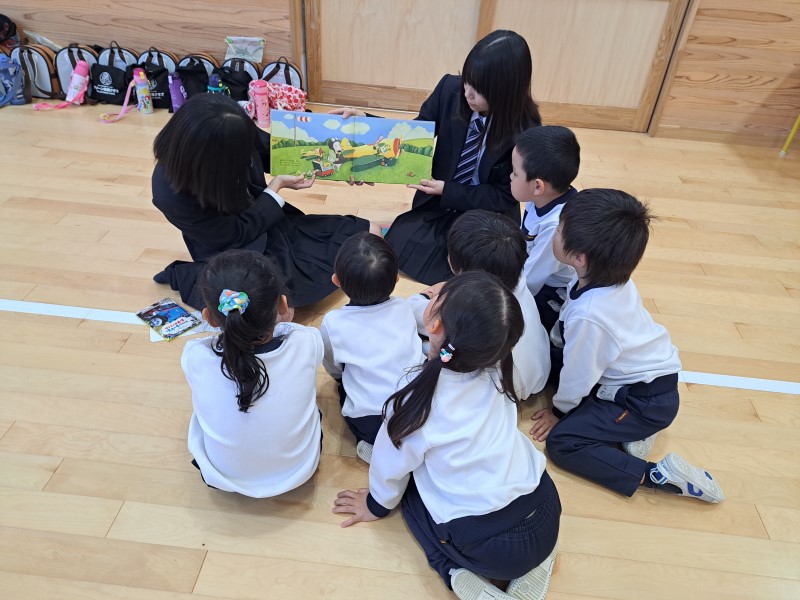 本校インターアクトクラブが、明照幼稚園(寺町3)を訪れ、先日修繕した絵本を届けました。 その際に、クラブ員が園児のみなさんに読み聞かせを行いました。興味津々の眼差しで絵本を見つめる園児のみなさん。和やかな雰囲気に包まれました。