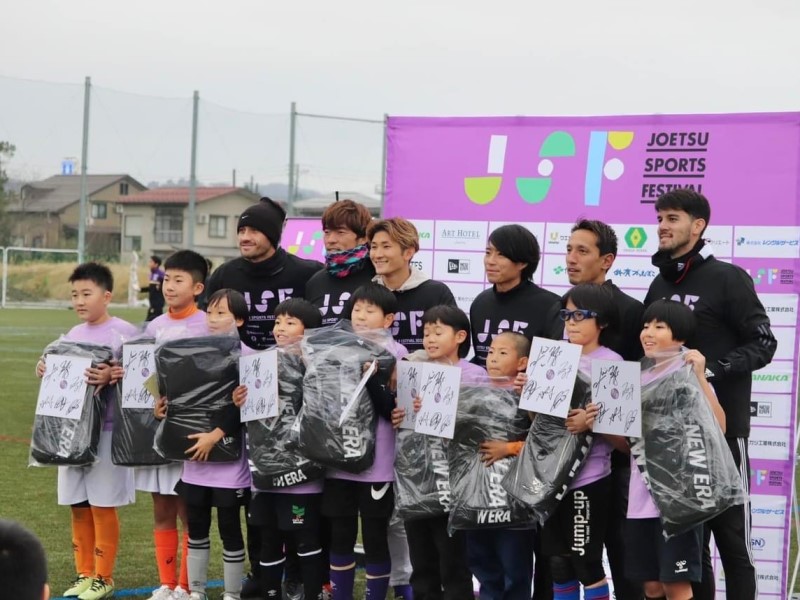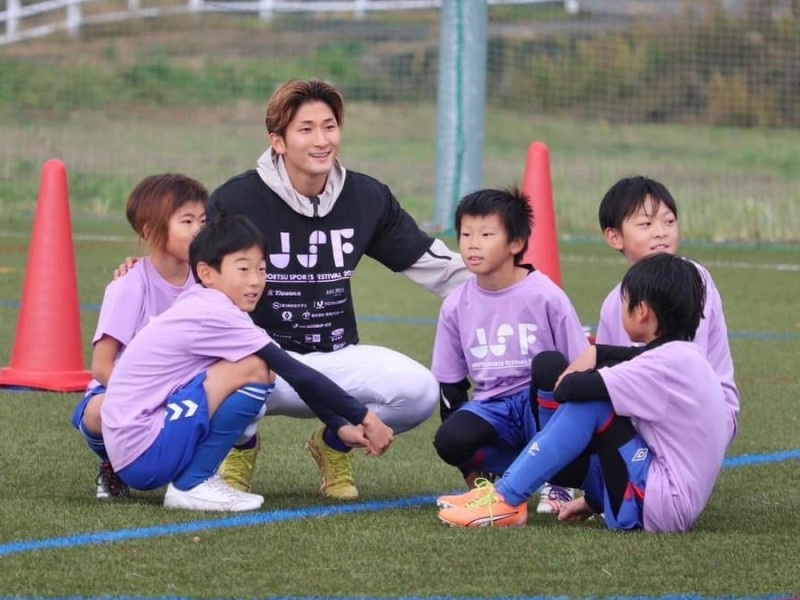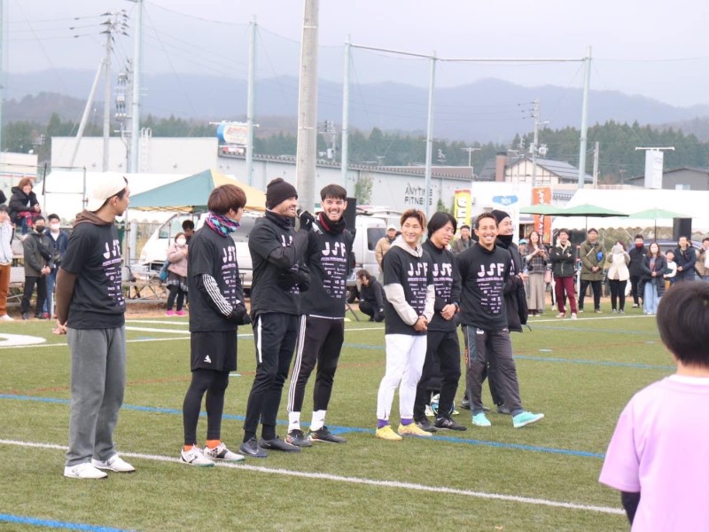 12月10日(日)、現役Jリーガー6名を招き、小学生対象のサッカー教室を開催しました。80名近くの児童が参加し、パス、シュート練習や試合形式での練習などを行いました。プロの選手の動きを見たり説明を受けたりすることで児童たちもよい刺激を受けたようでした。また、ダンス部もパフォーマンスを披露し場を盛り上げました。