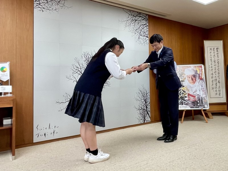 8月に京王アリーナTOKYOで開催される「全国高等学校ダンスドリル選手権」に出場するダンス部が上越市長を表敬訪問しました。 全国大会では入賞を目指し、頑張ります!応援よろしくお願いします!