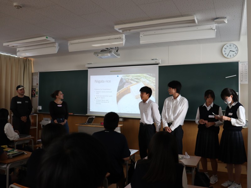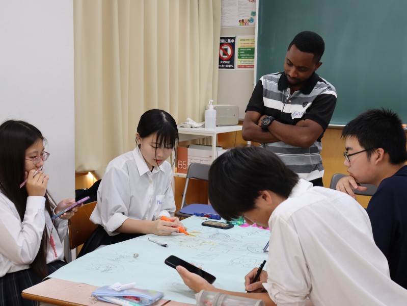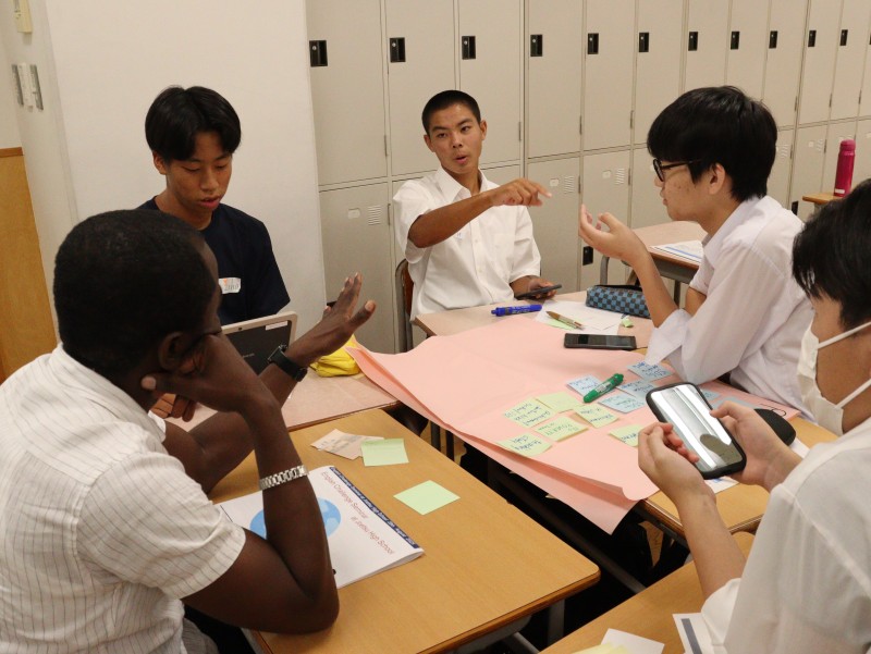 8月28日(木)、グローバル特進コース1年生が、新潟大学の大学院に通う8名の留学生を招いて、「イングリッシュチャレンジセミナー」を行いました。 生徒たちは4人ほどのグループに分かれ、自分たちでテーマを設定して、留学生のアドバイスを受けながら、英語でのプレゼンテーションを完成させました。