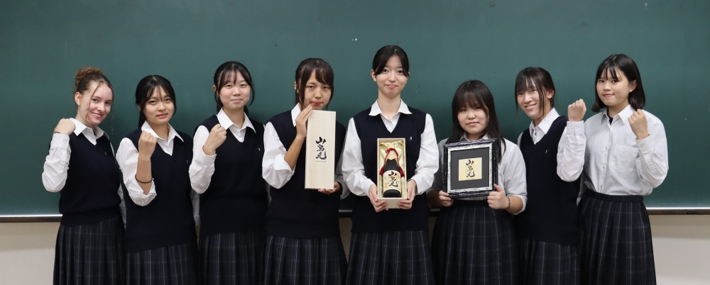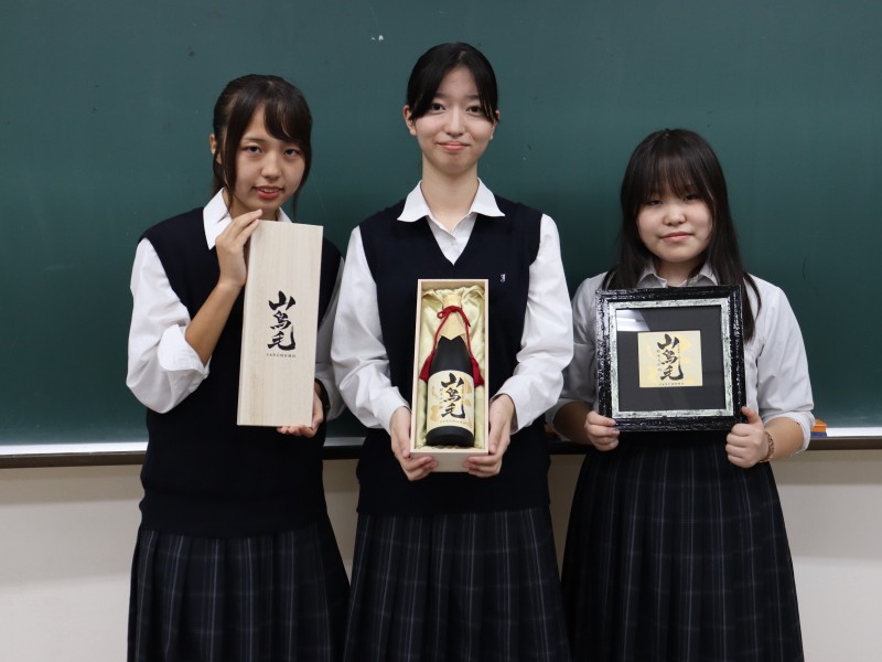 上越市の造り酒屋「田中酒造」様から完成した純米大吟醸「山鳥毛」とラベルを表装した額をご寄贈頂きました。ラベルの文字は2年生の佐藤美優さんが揮毫したものです。今後も皆様のご期待に応え、様々なことにチャレンジしていきます。