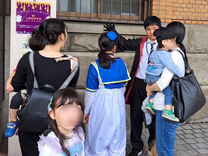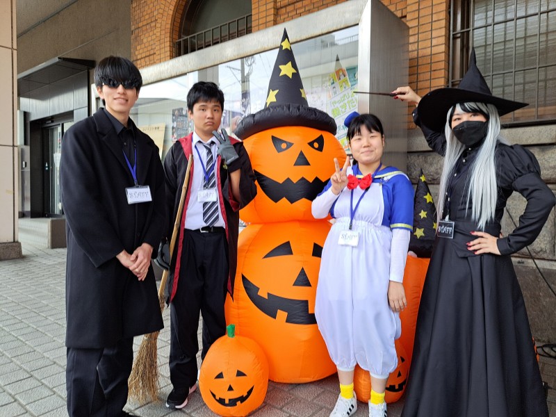 10月25日(土)本町通り商店街で「ほんちょうハロウィン」が行われ、インターアクトクラブの1年生3人が「まちかど交流館(旧第四銀行本店)」でグリーティング(イベントの案内)体験をしました。爽やかな秋晴れのこの日、仮装した子どもたちでいっぱいの「ほんちょうハロウィン」を楽しみました。
