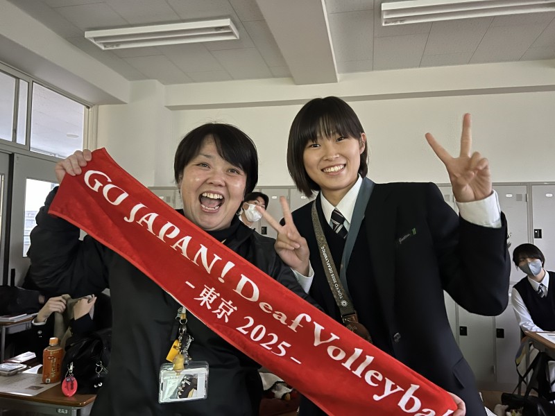 3年6組岡田夕愛さん(直江津中学校出身)が、「東京2025デフリンピック」バレーボール女子に代表選手として出場し、金メダルを手に帰ってきました。 岡田さんは背番号「2」を背負い、全試合に中心選手として出場、活躍しました。