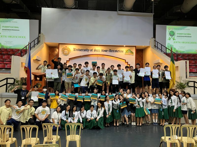 9日(火)から12日(金)は、学校交流プログラムが進められ、現地サンホセ大学の高校生とバディを組み、授業に参加したり日本やフィリピンの諸問題をディスカッションしたりと、充実した日々を過ごしました。慣れない英語のみでの会話に、苦戦しながらも一生懸命にコミュニケーションをとり、親睦を深めていました。